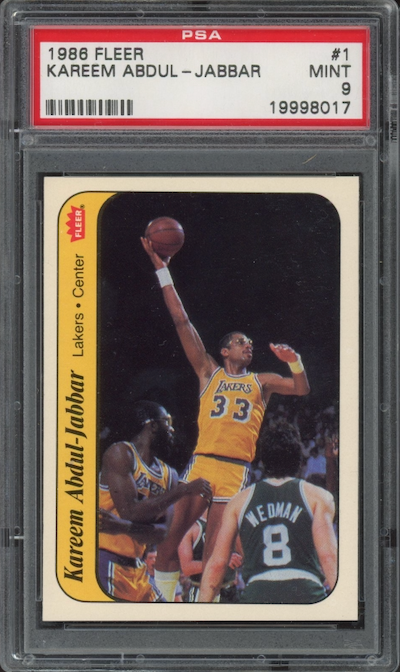 1986 Fleer Sticker #1 Kareem Abdul-Jabbar PSA 9