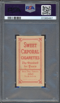 The T206 “With Bat” variation is one of two major Bresnahan cards in the legendary 1909–1911 T206 White Border set, the most iconic pre-war issue ever produced. This version shows him holding a bat on his shoulder in a sharp, confident pose, rendered in the rich, hand-tinted lithography that defines the set’s beauty. The Sweet Caporal back adds an extra layer of tradition and collectibility, being one of the most well-known and widely distributed T206 backs. Graded PSA 7, this example is exceptional for its age—with vivid coloration, remarkably strong registration, clean borders, and excellent eye appeal. T206s in this grade are increasingly rare, especially for Hall of Famers and popular poses.