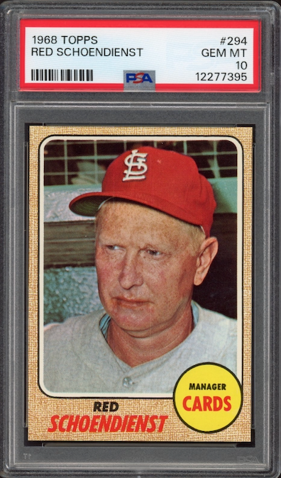 1968 Topps #294 Red Schoendienst PSA GEM MINT 10