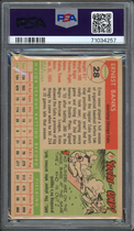 The 1955 Topps issue mirrors that mid-century charm perfectly, built around horizontal photography, bright color fields, and a clean, open layout that gives the card an easy, confident presence. It’s one of the most visually distinctive designs of the decade, and Banks’ image fits it beautifully, capturing him at the start of what would become a legendary career. This PSA 8.5 example shows excellent structural integrity, sharp corners, clean edges, and strong surface clarity, delivering eye appeal that comfortably sits above the typical survivors from a set now approaching seventy years in age. High-grade ’55 Topps stars with this kind of balance have grown increasingly selective.