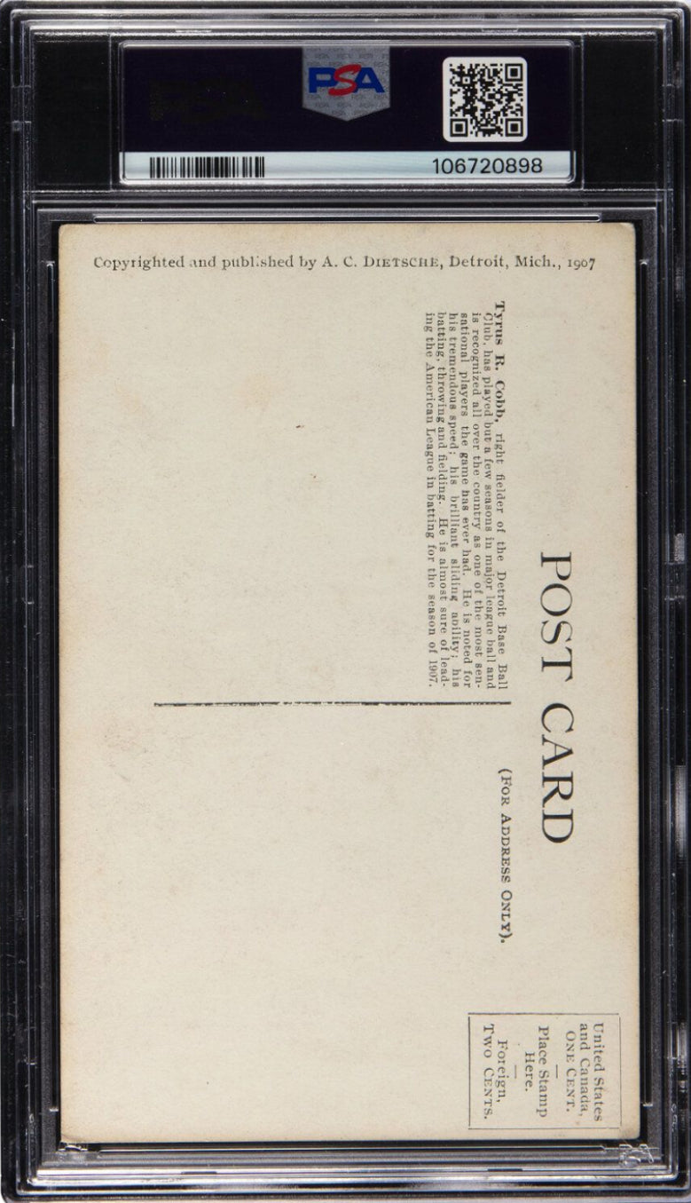 1907 Dietsche Detroit Tigers Postcards Ty Cobb ROOKIE Batting PSA VG 3