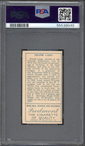 The 1911 T205 Gold Border set remains one of the most aesthetically ambitious and instantly recognizable releases of the pre-war era. Combining intricate, almost art nouveau-style design with rich player portraits and gleaming gold-leaf borders, the set presents each subject as if preserved in a miniature museum frame. This PSA 3 example of Frank Lange—sometimes mistakenly listed as “Lang”—offers collectors a visually compelling mid-grade copy from one of tobacco card history’s most storied sets.